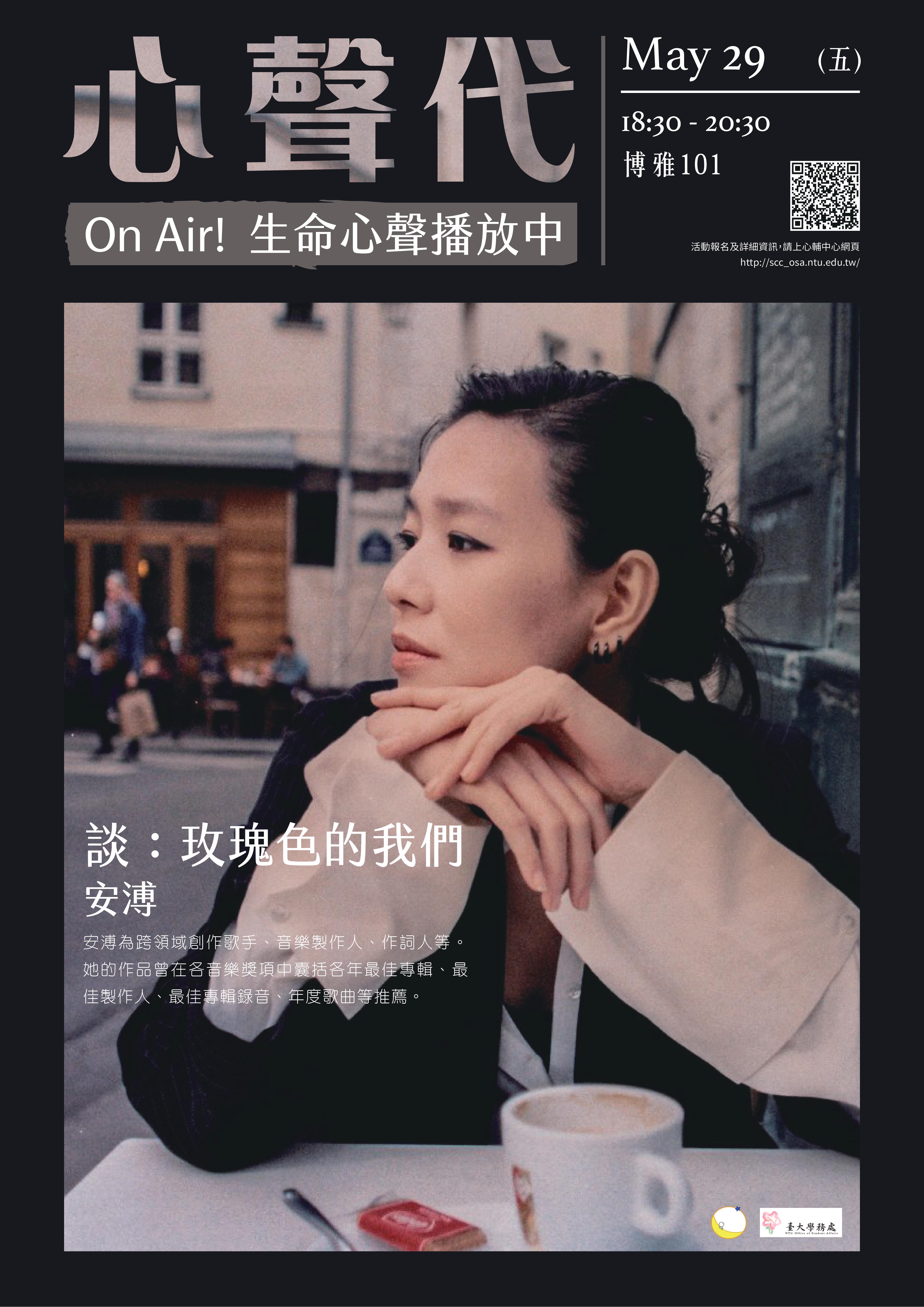 一學期一場的心聲代講堂,聽見同學們對人生有時不免徬徨的心聲,特別邀請到創作歌手安溥(張懸)來與同學們分享自己的生命經驗,談她從關注婚姻平權等社會議題,到親身投入,然後舉辦一連串公民對談的心路歷程。心聲代給正對生命與社會感到迷惘、不知所措的你/妳,讓我們聽見彼此最深處的心聲。